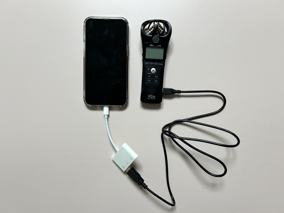 오늘 포스팅에서 가장 중요한 부분입니다. 저처럼 고급 장비를 갖추지 못한 사용자에게 고화질 영상을 녹화할 수 있는 스마트폰에 외장 마이크로 Zoom H1n을 연결하면 음향 또한 좋은 영상을 촬영할 수 있습니다. 아이폰뿐만 아니라 컴퓨터나 카메라에도 아래의 방법을 응용하여 연결할 수 있습니다.